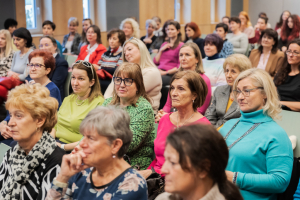 Közel százan érkeztek kamaránk nőnapi programjára, Görög Ibolya protokollszakértő előadására.