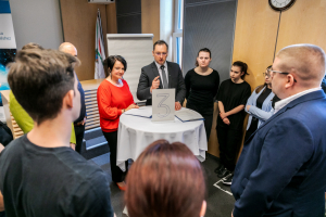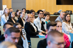 Évről évre kamaránk egyik legnépszerűbb programja a HR konferencia. A 2024. április 10-ei programon a vendégeket Tompa Krisztián, a GYMSM KIK titkára és dr. Konczosné prof. dr. Szombathelyi Márta, a kamarai HR Klub vezetője, a Széchenyi István Egyetem professzor asszonya köszöntötte.