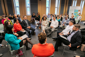 Az előadásokat követően a Co-creation Consulting Kft. szakemberei, Gonczlik Andrea és Gonczlik Tímea facilitátorok vezetésével, ún. akvárium módszerrel dolgozták fel a konferencia résztvevői a következő témákat: