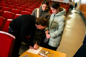 Az interaktív beszélgetés során a diákok aktívan kérdeztek, a kíváncsiság és az érdeklődés végig érezhető volt. Az esemény zárásaként lehetőség nyílt Rakonczay Gábor „42” című könyvének megvásárlására és dedikáltatására is, amely tovább mélyítette az élményt és személyes emléket adott a résztvevőknek.