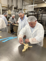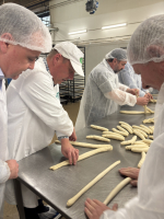 A kamarai delegáció érkezést követően lelátogatott a sütőüzembe, ahol mindenki elkészíthette a saját húsvéti kalácsait. Amíg a tészta sült, a résztvevők megtartották áprilisi elnökségi ülésüket felkészülve a tagozat soron következő eseményeire.