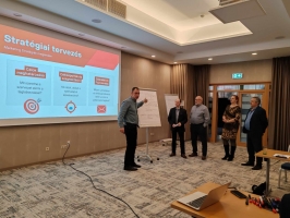 A program második felében Dr. Eisingerné Dr. Balassa Boglárka tarott marketing tréninget a tisztségviselőknek. A résztvevők 3 csapatot alkotva dolgozták ki a kamarai szolgáltatások népszerűsítésének legfontosabb pontjait a klasszikus marketing mix, a 4P szemszögéből.