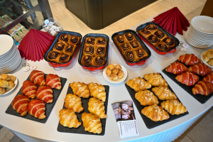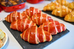 A sajtótájékoztató résztvevői a Pedró Pékség jóvoltából kaptak már egy kis ízelítőt a Kenyérfesztivál finomságaiból. Kakaós csiga, croissant, pogácsa, kifli, kalács és persze kenyér lesz a Széchenyi téren minden mennyiségben, és természetesen szebbnél szebb kézműves termékek.