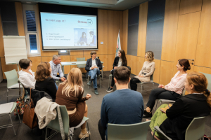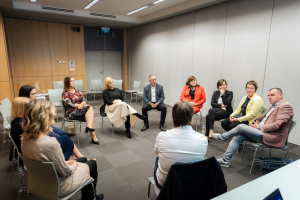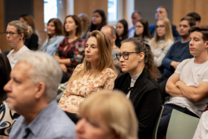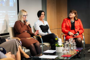 A pódiumbeszélgetés során neves vállalati szakemberek osztották meg tapasztalataikat és jó gyakorlataikat, betekintést nyújtva abba, miként teremthető meg a szervezeteken belül az eredményesség és az emberség egyensúlya. A beszélgetést Dr. Konczosné Prof. Dr. Szombathelyi Márta moderálta, a résztvevők között pedig több jelentős vállalat vezetői és szakemberei is jelen voltak: