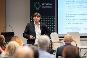 · Faragó István (Wellbeing Social Hub alapítója, a Stressz-M tulajdonosa, okleveles egészségfejlesztő és mentálhigiénés szakember) Mentális jóllét, mint versenyelőny – nemzetközi modellek, hazai válaszok című előadásában bemutatta, hogyan vált a mentális egészség a vállalati stratégia kulcselemévé a WHO, OECD és MHA szerint. Konkrét gyakorlatokon keresztül szemléltette, miként teremthető érték a jóllétből – vezetői szerepvállalással, kultúraváltással és ESG-alapú megközelítéssel.