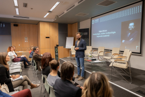 · Sipka Bence (pszichológus, ember–technológia kapcsolat szakértő) Work hard, play hard, burn out – Miért vezet kiégéshez a technológiai ingerek túlfogyasztása? című előadásában arra hívta fel a figyelmet, hogyan hat ránk a digitális tér, és miként használható a technológia a mentális jóllét és a produktivitás támogatására.
