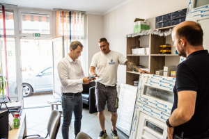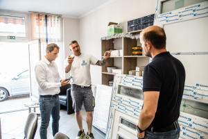 Kamaránk képviselőit, Erdős Vilmos kamarai munkatársat, Zambó Péter ügyvezetőt (Fensterwerk Kft.), valamint Németh Ferenc egyéni vállalkozót a Kalba-Fess Kft. képviseletében Kálmán Tamás és Kálmánné Bali Gréta ügyvezetők és Vargáné Szabó Réka értékesítő munkatárs fogadta.