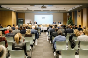 Az előadást követően Pintér-Péntek Imre, a kamara elnöke csatlakozott a NAV igazgatójának gondolataihoz. Elmondta: a vállalkozók alkalmazkodóképességét valóban próbára tették az elmúlt évek, s a kamara összefogással, együtt gondolkodással, információátadással, lobbitevékenységével igyekezett segíteni tagjait. Idén megkezdődtek és jövőre is folytatódnak a taglátogatások, az önfejlesztéssel és önmenedzseléssel foglalkozó Plato-csoportok munkája, valamint előrehaladott tárgyalások zajlanak a Széchenyi István Egyetemmel olyan tudástranszfer program kidolgozásáról, amely a vállalkozások versenyképességének fokozását célozza.
