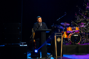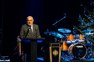 Az ünnepi köszöntőket követően a gála zenei csúcspontjaként Gájer Bálint és zenekara varázsolt meghitt, karácsonyi hangulatot a színházterembe. A koncert valódi ünnepi élményt nyújtott a résztvevők számára, méltó lezárásaként egy tartalmas és eseménydús évnek.